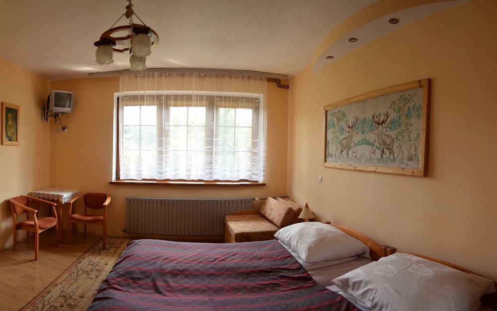 Posiadamy pokoje 2, 3, 4 osobowe, każdy z własną łazienką, TV, dostępem do internetu. Do dyspozycji gości jest jadalnia - świetlica z aneksem kuchennym. Możliwość skorzystania z posiłków przygotowanych z własnego ekologicznego gospodarstwa. Na życzenie można dostać chleb własnego wypieku, mleko, twaróg.